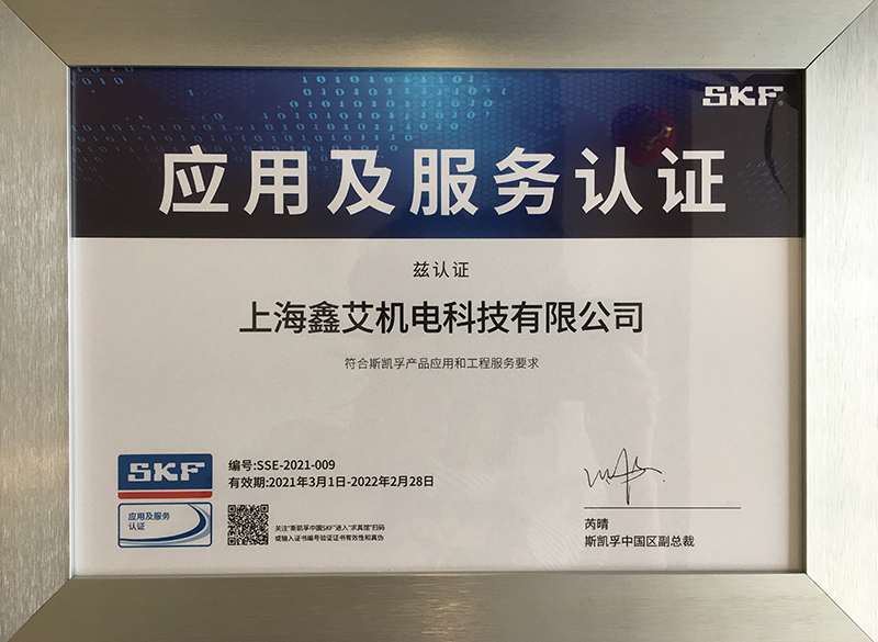上海鑫艾獲得“SKF應用及服務認證”證書。